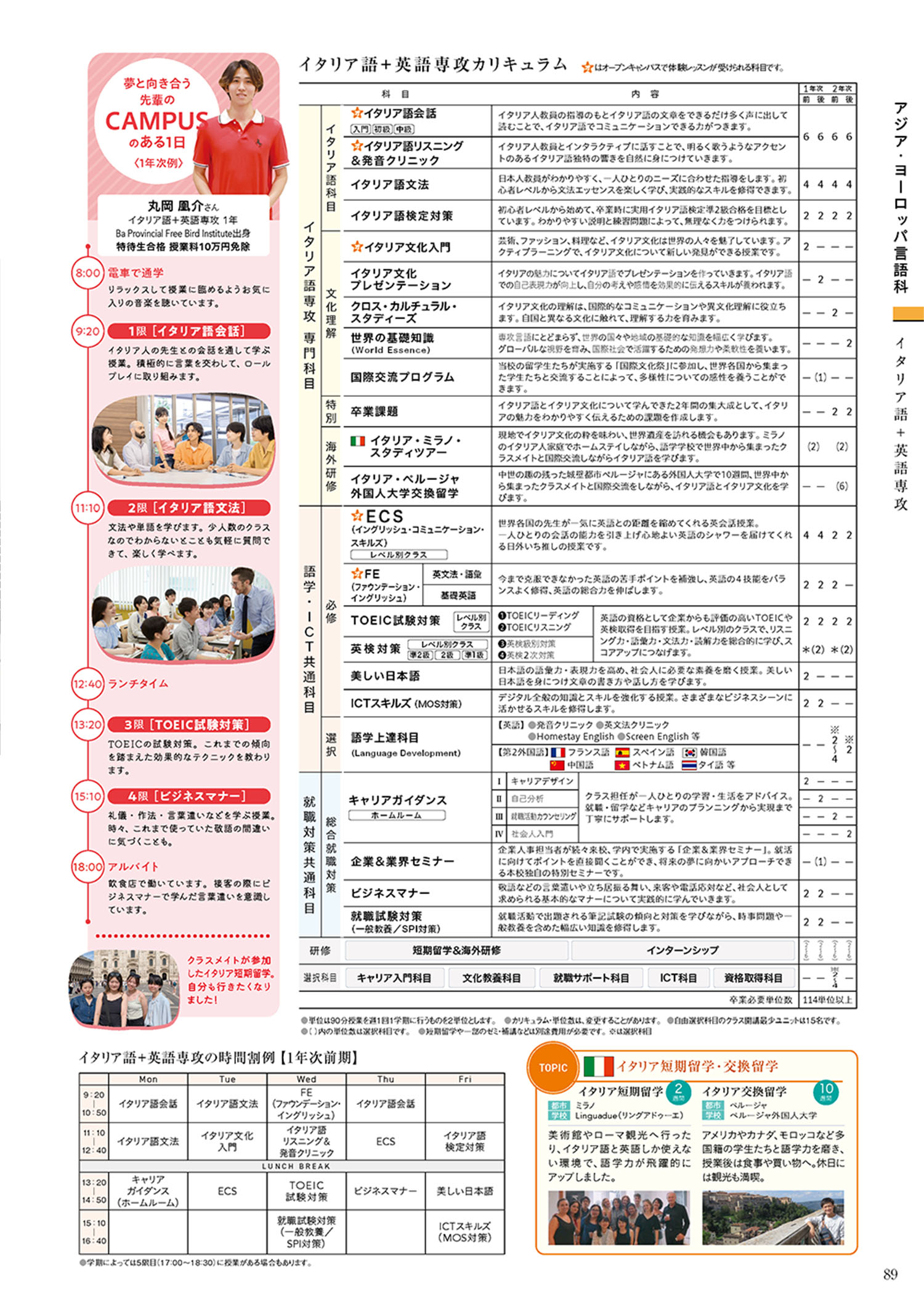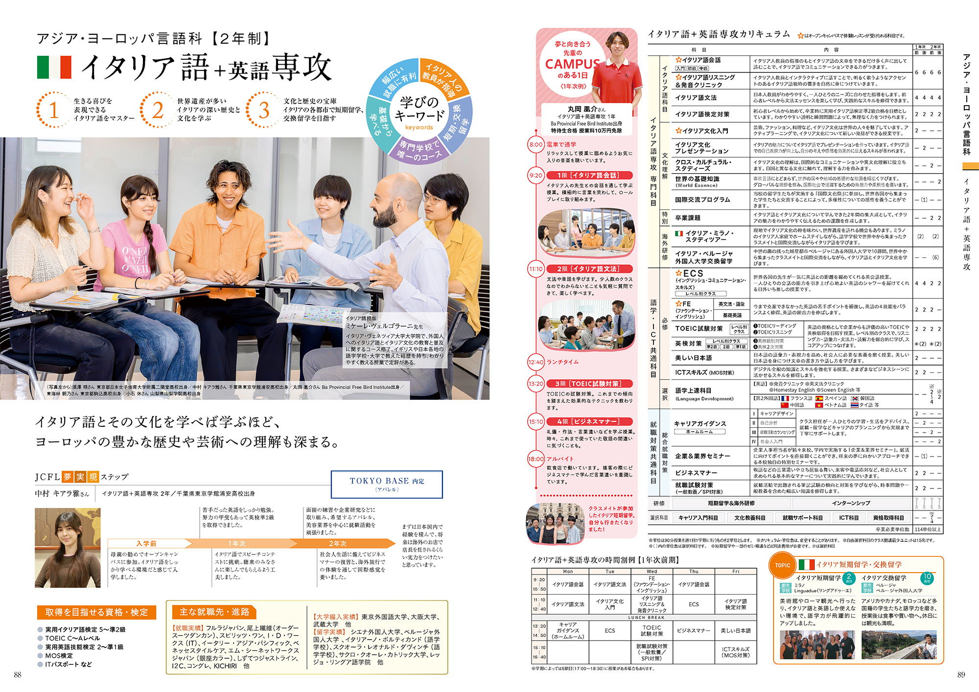イタリア語+英語専攻(アジア・ヨーロッパ言語科:2年制)