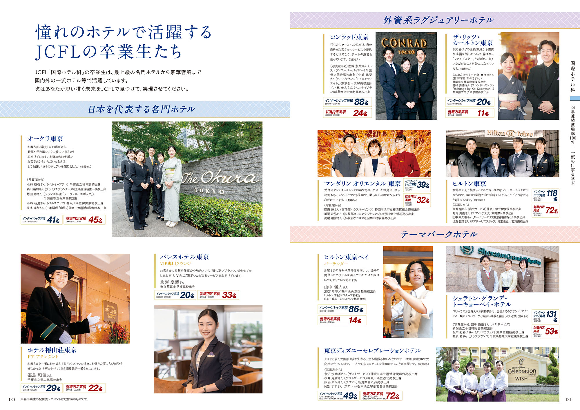帝国ホテル、パレスホテル東京、ホテルオークラ東京、ホテルニューオータニ東京、ミリアルリゾートホテルズ、ブライトンコーポレーション、ザ・リッツカールトン東京、マンダリンオリエンタル東京、ウェスティンホテル東京、アマン東京、ジャヌ東京、ザ・ペニンシュラ東京、シャングリ・ラ 東京、東京エディション虎ノ門、パークハイアット東京、アンダーズ東京、グランドハイアット東京、コンラッド東京、ヒルトン東京、ヒルトン東京お台場、ヒルトン東京ベイ、ホテルインターコンチネンタル東京ベイ、ANAインターコンチネンタルホテル東京、シェラトン・グランデ・トーキョーベイ・ホテル、ホテルオークラ東京ベイ、横浜ベイシェラトンホテル&タワーズ、星野リゾート、Amanemu、ザ・リッツ・カールトン沖縄、ハイアットリージェンシー瀬良垣アイランド沖縄、ハレクラニ沖縄、ルネッサンスリゾートオキナワ、シギラセブンマイルズリゾート、MSCクルーズ、イクスピアリ、ユー・エス・ジェイ、レゴランドジャパン、郵船クルーズ、東京ドーム 他