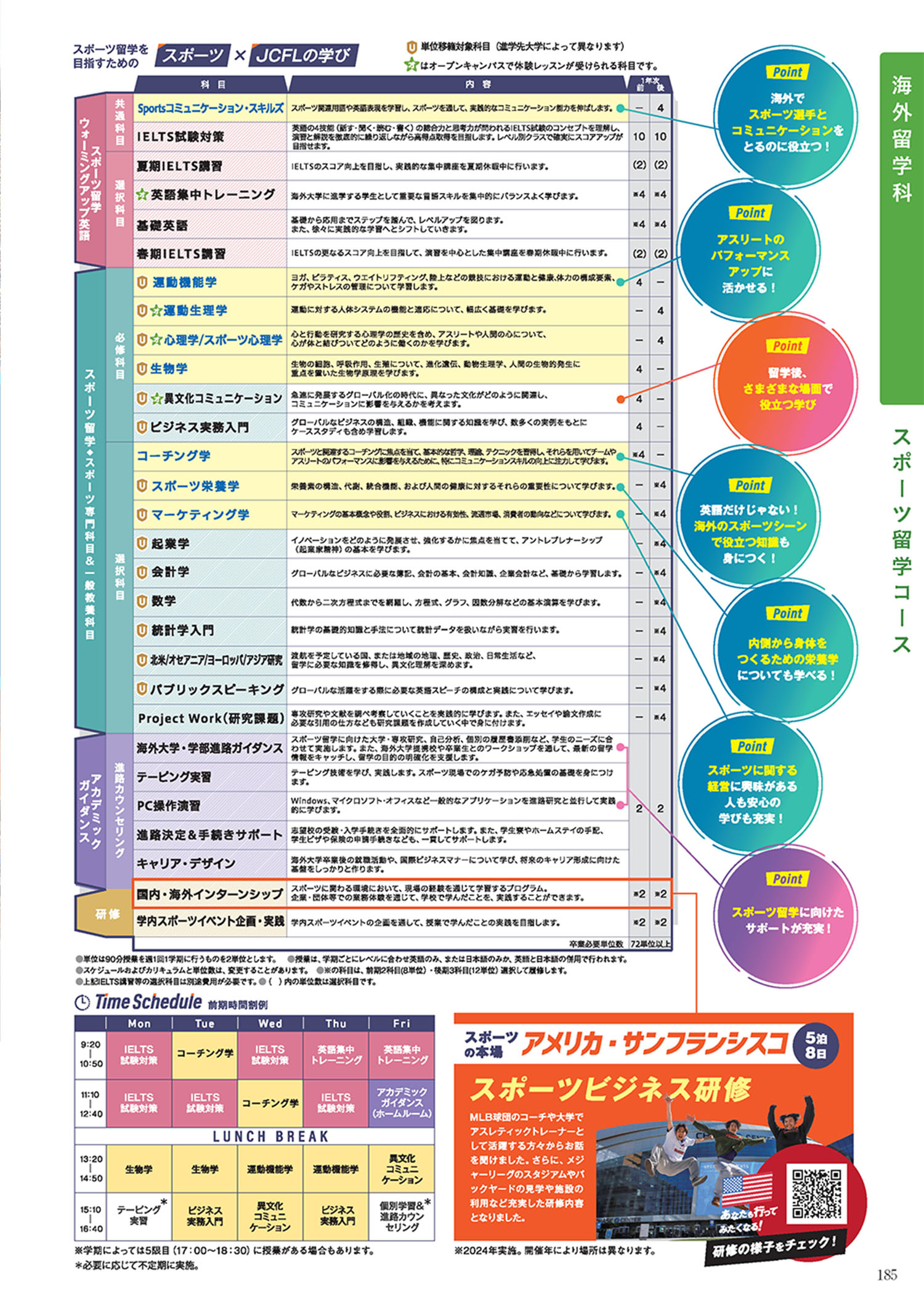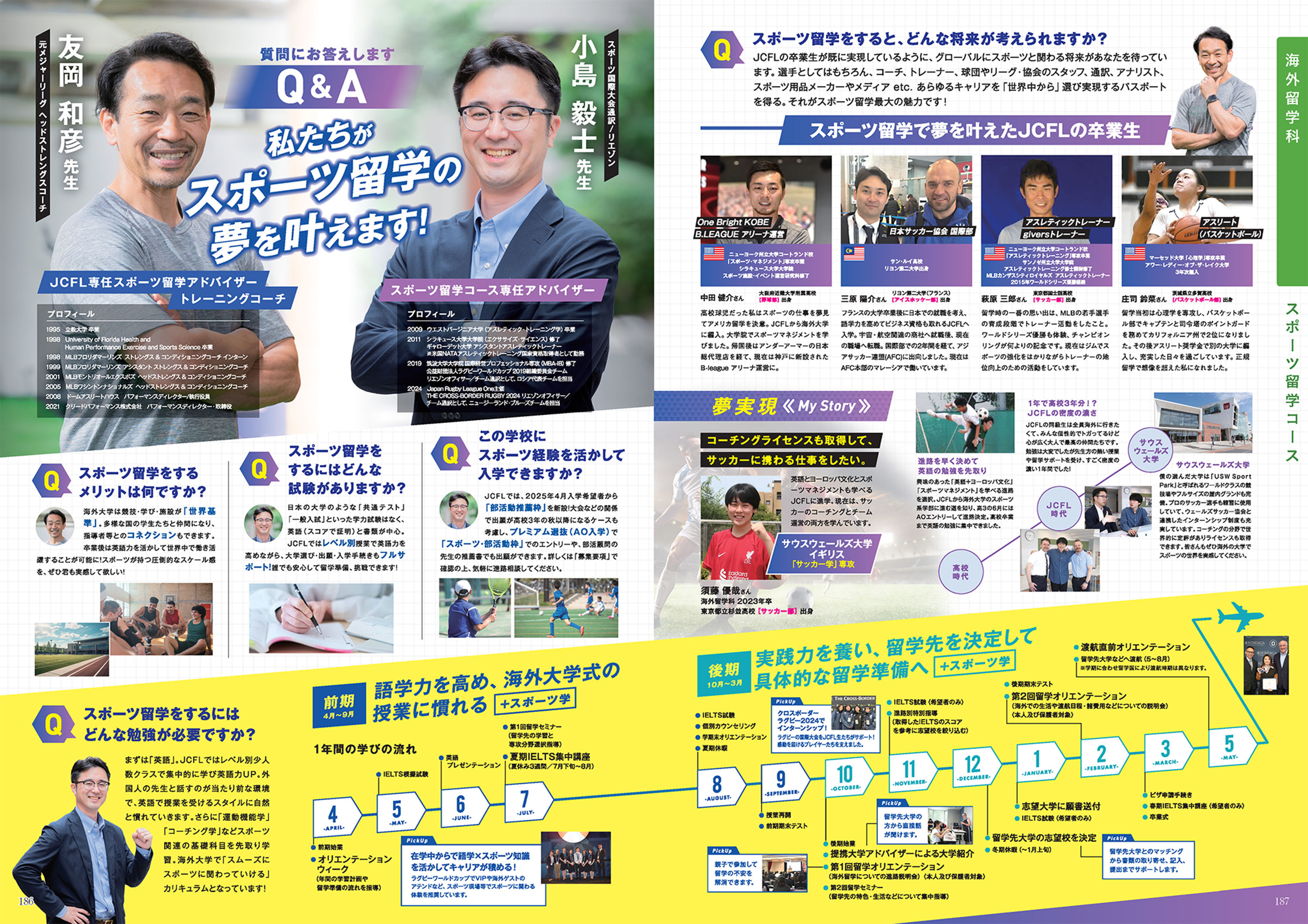 スポーツビジネスで世界を目指す。スポーツで人生を輝かせる。今、注目を浴びるスポーツビジネスの最前線は、日本を飛び出した先、世界にあります。日本では学べないスポーツに関わる専攻も海外大学では豊富。JCFL「海外留学科」の1年間で世界で学べる英語力を身につけ、スポーツ学の基礎を学び、海外大学卒業を目指す画期的な留学を実現させましょう。 教員紹介スポーツ留学経験者 小島先生が指導